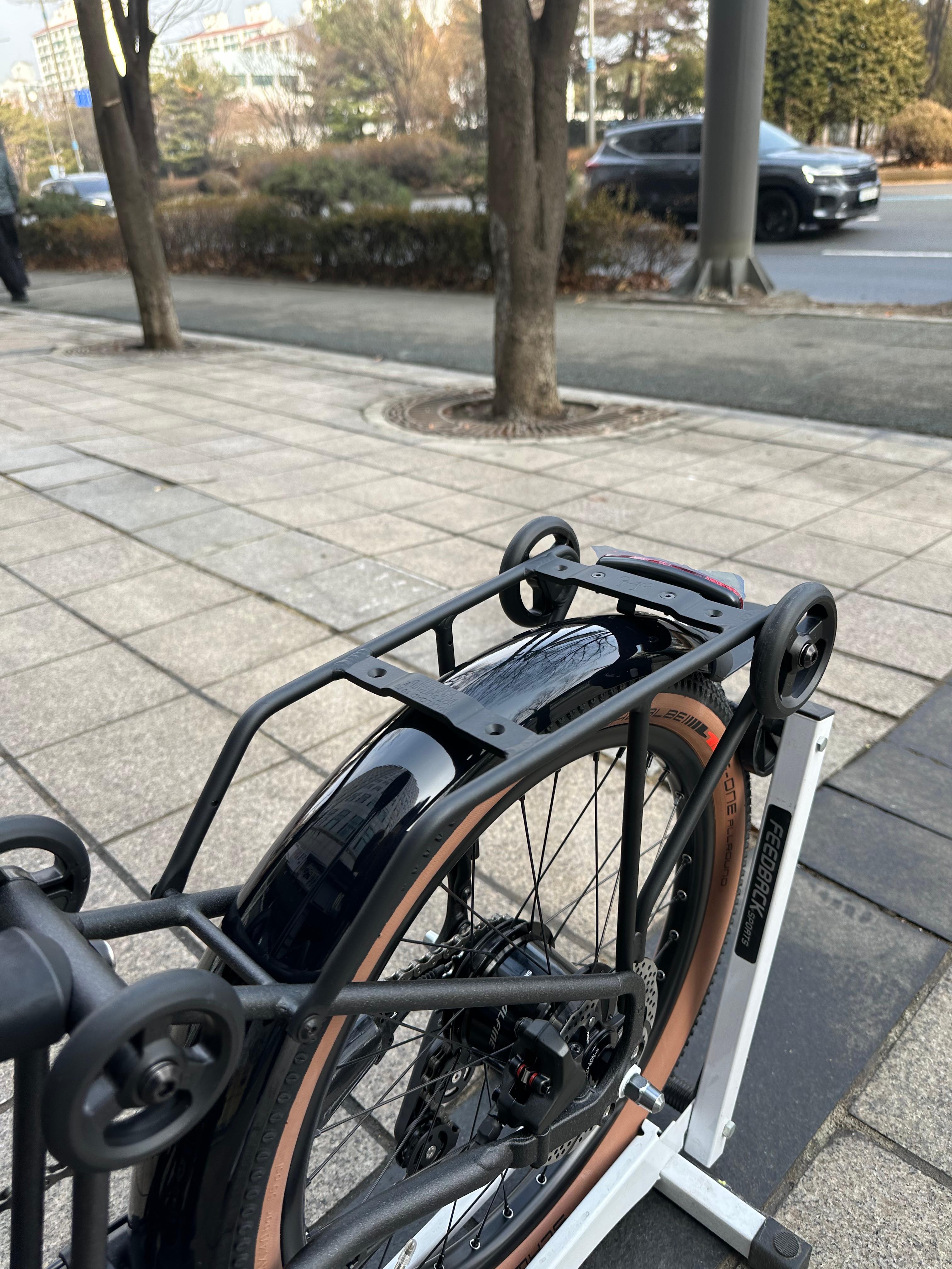 브롬톤 G Line은 "브롬톤으로 여행을 가고 싶다", "더 거친 길을 달리고 싶다"는 라이더들의 꿈을 실현해 주는 기체입니다. 특히 이번 스페이스 블랙은 실물로 보았을 때 그 단단한 만듦새가 더욱 돋보입니다.